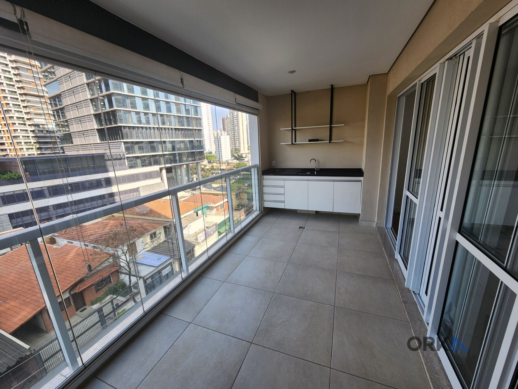 Ao entrar, você será recebido por uma ampla e bem iluminada sala de estar, com conexão direta à varanda envidraçada. Este espaço, além de oferecer uma vista agradável, está equipado com pia para churrasqueira elétrica e armários, tornando-se ideal para momentos de descontração e lazer.