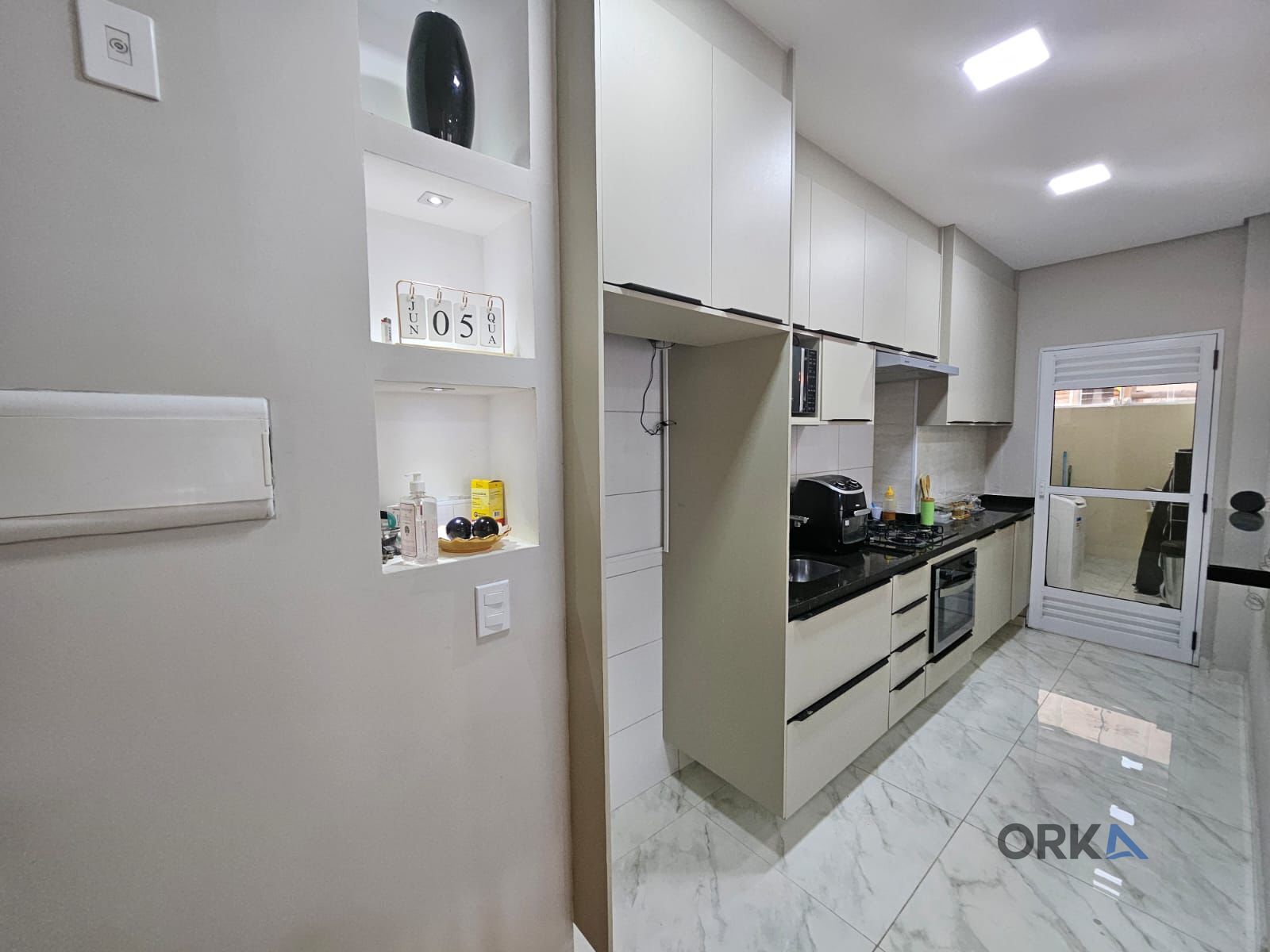 - Lavanderia independente, separada da cozinha por porta de alumínio e vidro, garantindo funcionalidade e organização.
