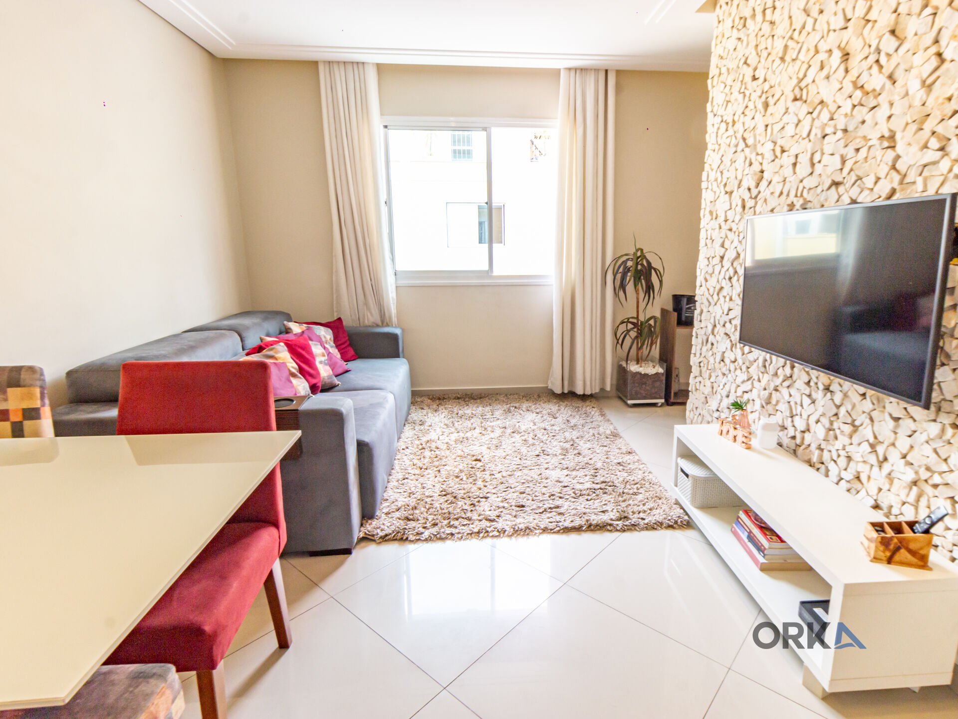 -Sala ampla e cozinha com acesso à área gourmet com churrasqueira